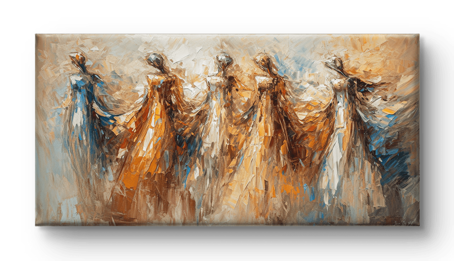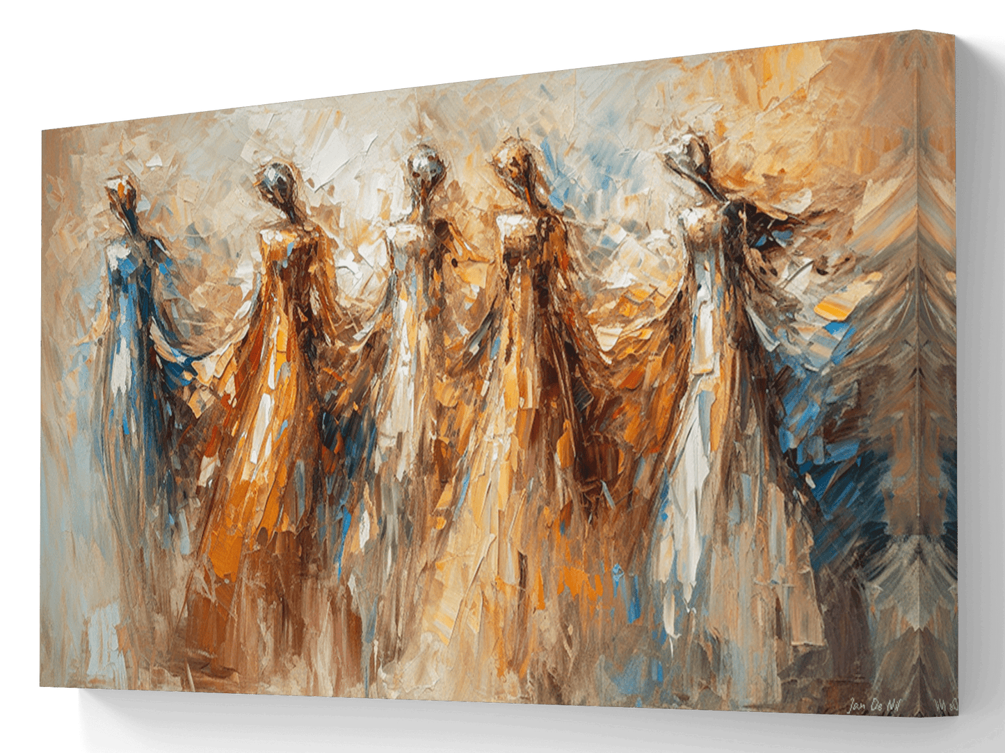 Het betoverende schilderij "Symfonie van Geluk" vangt de essentie van vreugde en verbondenheid in zijn artistieke expressie. De dynamische penseelstreken en warme tinten creëren een gevoel van vrijheid en samenzijn, waardoor elk interieur wordt verlevendigd met een positieve en energieke uitstraling.