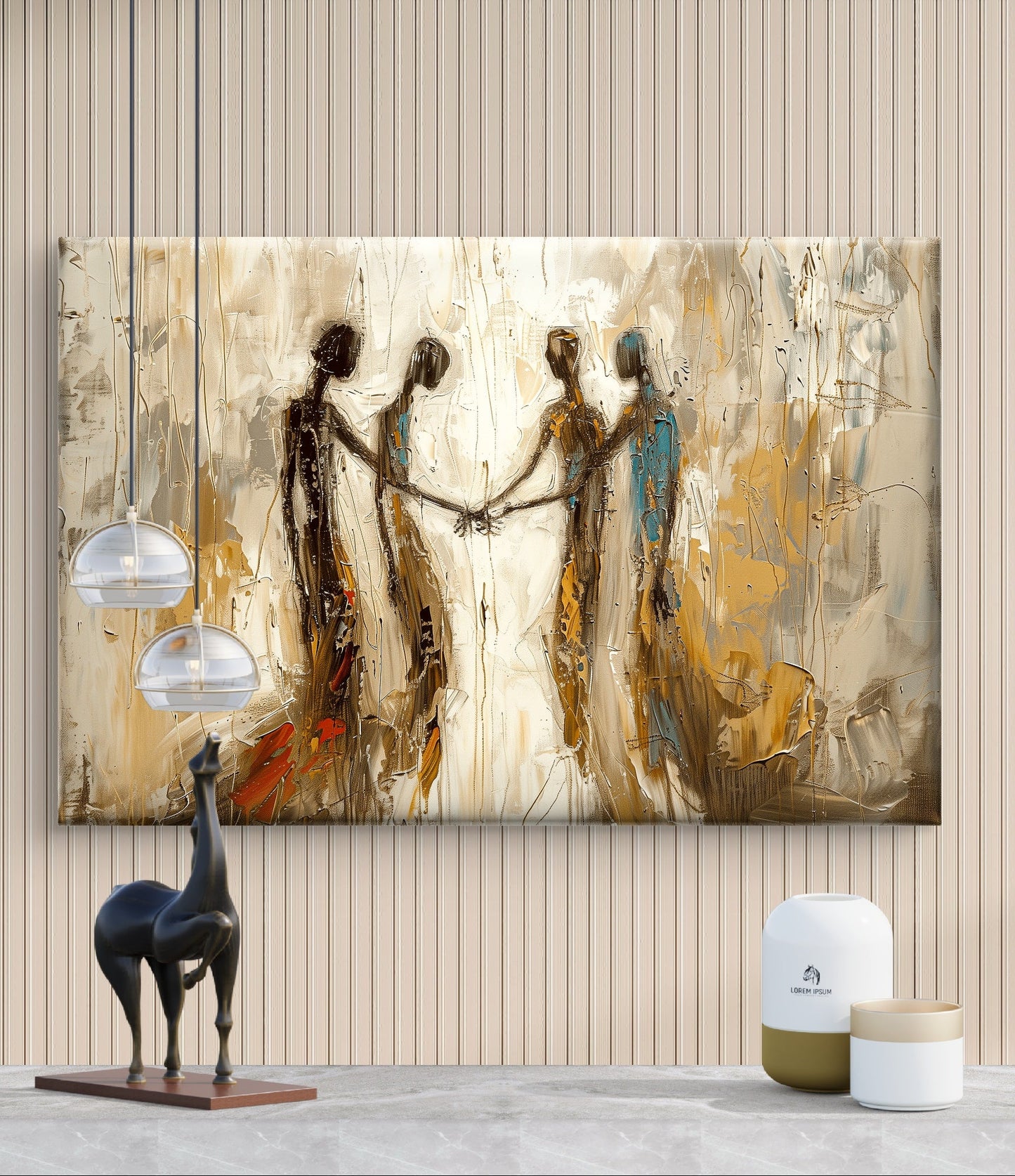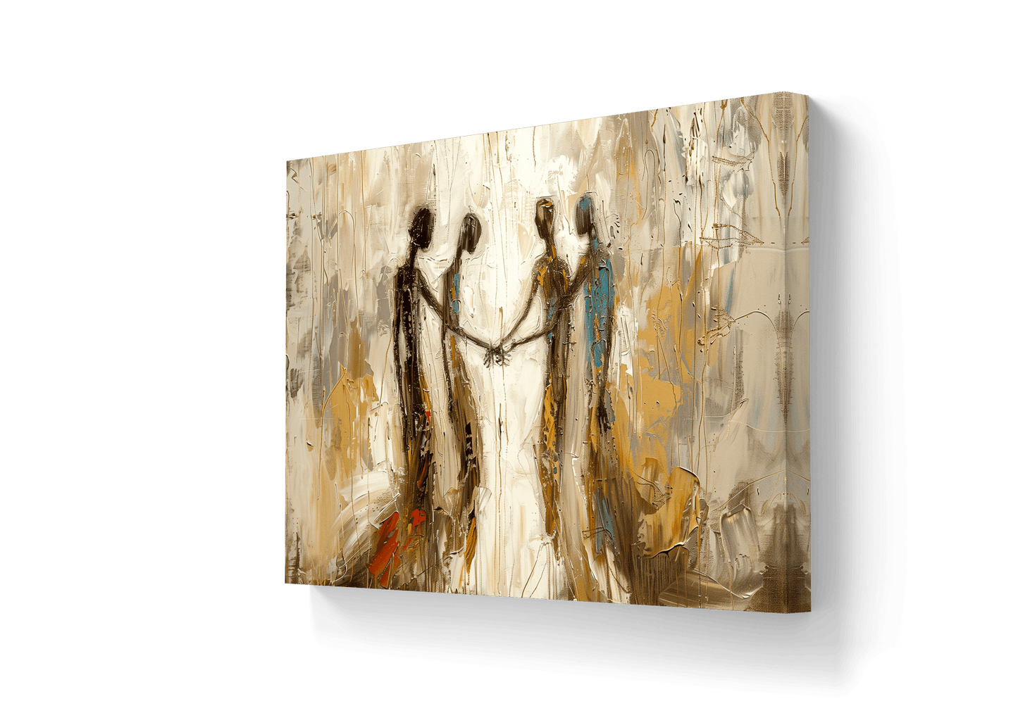 🎨 De warme aardetinten en subtiele beweging in de vormen creëren een sfeer van rust en herkenning. Het werk ademt tederheid, zachtheid, en de kracht van kleine gebaren. Ideaal voor wie houdt van kunst met een boodschap, zonder woorden.